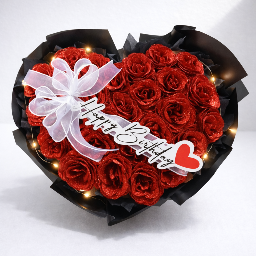 Be the first to review “レッドローズ! ラメ入り花束 ライト付き 15本 グリッターライト 赤ローズブーケ”